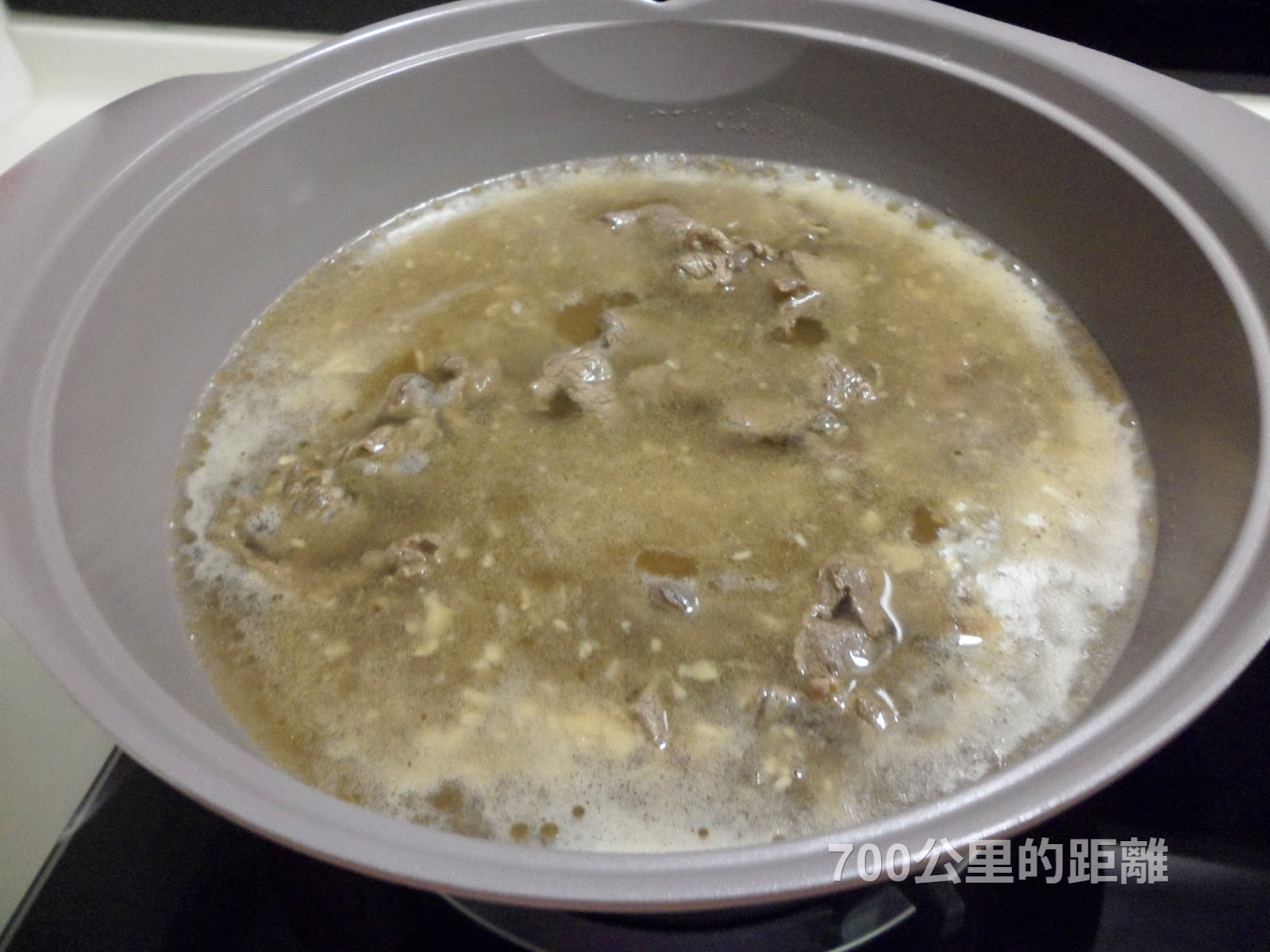 加燒開水進來,轉大火,牛肉完全變色就可以先撈起,不然煮太久會不好吃!