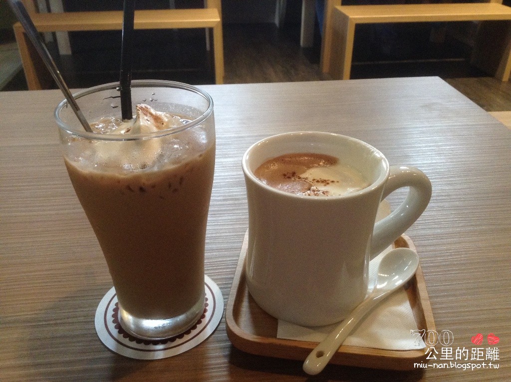 結帳後馬上送來附餐的小杯黑豆漿,附餐飲料是紅茶、咖啡、培茶、玄米茶四選一,若換其他飲料,可半價,於是Miu和楠點了熱可可牛奶和冰伯爵鮮奶茶。