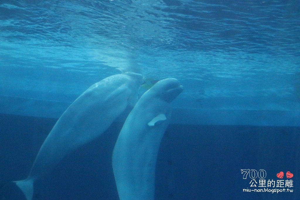 白鯨池看起來蠻大的,但什麼都沒有,Miu看著覺得其實蠻可憐的,被困在這兒雖然不用表演、不用工作也定時有吃的,但若牠們真的有6、7歲小孩智商,也太無聊了吧!